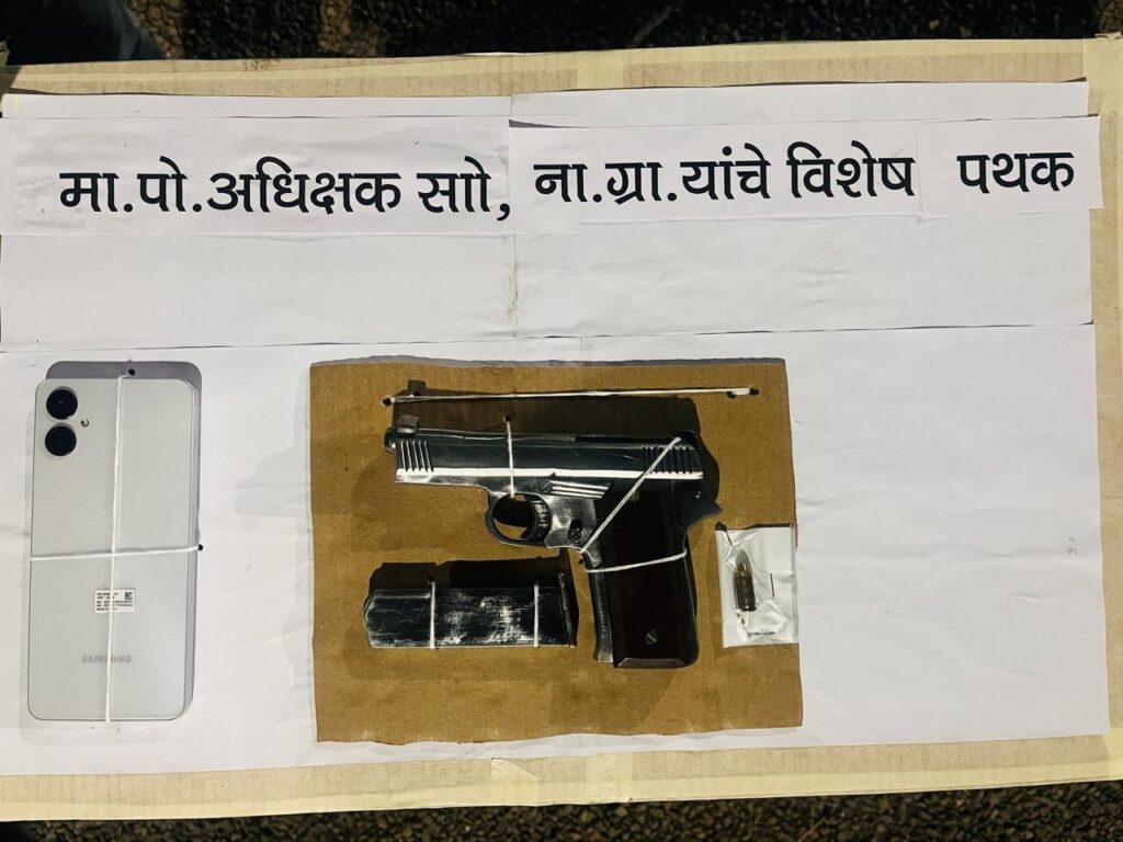 दिनांक २३/१२/२०२५ रोजी मा. पोलीस अधीक्षक नाशिक ग्रामीण यांचे विशेष पथकातील अधिकरी व अंमलदार असे अवैध व्यवसायांवर कारवाई करण्यासाठी गस्त घालत असतांना मिळालेल्या गुप्त बातमीनुसार, त्रंबकेश्वर पोलीस ठाण्याच्या हद्यीत पेगलवाडी फाटा येथे रोडवर एक इसम अवैधरित्या घातक अग्नीशस्त्रे बाळगुन काहीतरी गुन्हा करण्याचे उद्देशाने फिरत असल्याची बातमी मिळाली. त्याप्रमाणे पथकातील अधिकारी व अंमलदार यांनी त्रंबकेश्वर मधील पेगलवाडी फाटा येथे सापळा लावुन संशयीत इसमास शिताफिने ताब्यात घेतले. सदर इसमास विचारपुस केली असता त्याचे नाव देवराम संतु सोनवणे, वय ४६ वर्ष, रा. तळेगाव, ता. त्रंबकेश्वर, जि. नाशिक असल्याचे सांगितले. त्याची झडती घेतली असता त्याचे कब्जात ०१ देशी बनावटीचे पिस्टल (गावठी कट्टा) व ०१ जीवंत काडतूस, ०१ मोटारसायकल, मोबईल फोन असा मुद्देमाल मिळून आला. सदर इसम हा विनापरवाना बेकादेशीररित्या घातक अग्नीशस्त्र कब्जात बाळगांना मिळून आला असून त्यांचेविरुध्द त्रंबकेश्वर पोलीस ठाणेस भारतीय हत्यार कायदा कलम ३/२५ सह मपोकाक १३५ प्रमाणे गुन्हा दाखल करण्यात आला आहे.