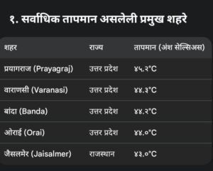 • चंद्रपूर आणि नागपूर: पूर्व विदर्भातील ही शहरे दरवर्षीप्रमाणे यंदाही सर्वाधिक उष्ण शहरांच्या यादीत कायम आहेत.
